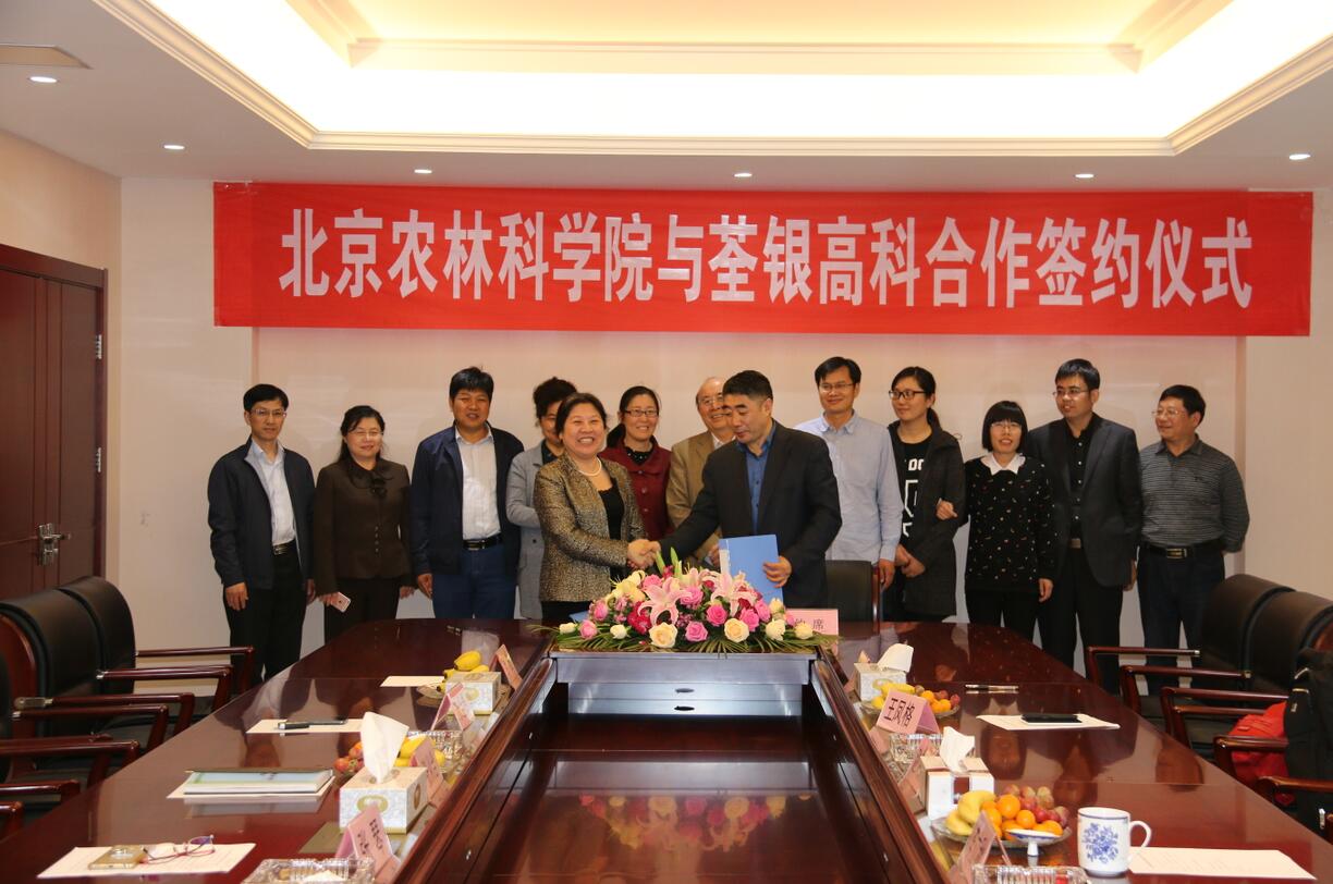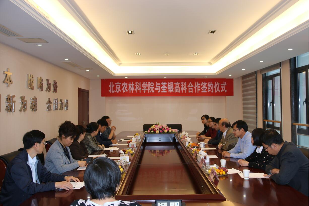 ? ?2017年4月20日下午,荃銀高科與北京農(nóng)林科學院簽約儀式在公司總部順利舉行,雙方就玉米科研育種及品種開發(fā)達成合作。中國種子協(xié)會副會長兼秘書長李立秋,北京農(nóng)林科學院玉米研究中心主任趙久然及其團隊代表,荃銀高科董事長張琴,副總經(jīng)理張從合、王瑾、葉紅等出席了簽約儀式,會議由公司副總經(jīng)理朱全貴主持。