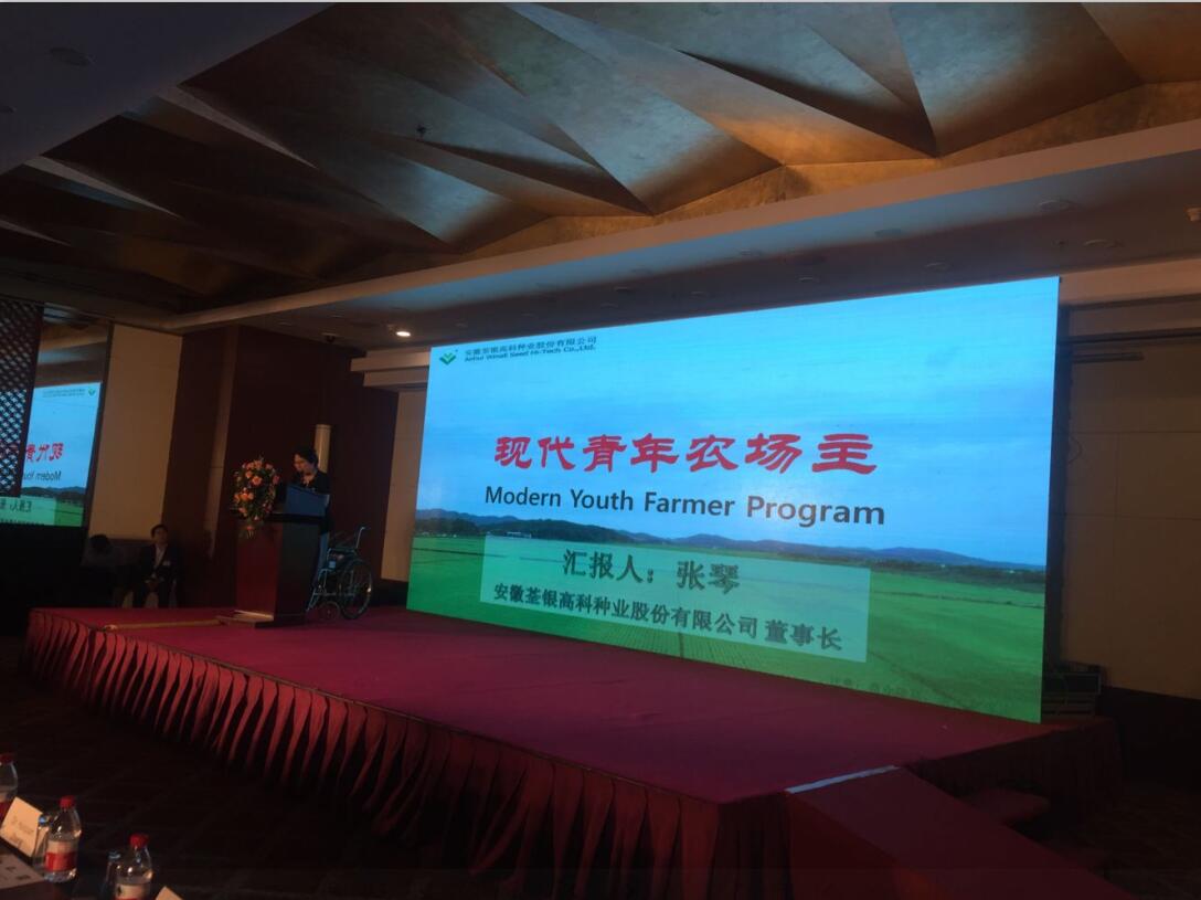 張琴董事長的發(fā)言著重介紹了由荃銀高科發(fā)起的“現(xiàn)代青年農(nóng)場主”培養(yǎng)計劃,從農(nóng)業(yè)企業(yè)的角度闡述了中國新型職業(yè)農(nóng)民培養(yǎng)的必要性和道路艱辛。她指出,荃銀高科作為國內(nèi)領(lǐng)先的種業(yè)企業(yè),有躬耕于壟畝的農(nóng)業(yè)情懷,有“良種良法配套”的發(fā)展需求,更有實現(xiàn)“全贏”的價值觀,于2012年發(fā)起企業(yè)社會責(zé)任項目“現(xiàn)代青年農(nóng)場主”,培養(yǎng)定位為:現(xiàn)代農(nóng)業(yè)的實踐者、糧食生產(chǎn)的貢獻者,美好鄉(xiāng)村的貢獻者、基層政權(quán)的鞏固者、國際合作的促進者。為此,荃銀高科做出了很多的努力,也得到了社會各界的支持幫助和肯定。她強調(diào),中國農(nóng)業(yè)現(xiàn)代化發(fā)展道路之多艱,需要社會各界有識之士的共同努力。荃銀高科也將本著開放、合作、共贏的發(fā)展理念,希望越來越多的人參與到“現(xiàn)代青年農(nóng)場主”培養(yǎng)工作中來,共同推進中國新型職業(yè)農(nóng)民培養(yǎng)工作。