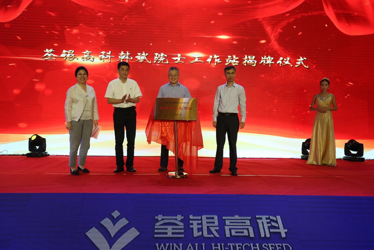 在29日下午會上,農(nóng)業(yè)部科教司廖西元司長、安徽省科學(xué)技術(shù)廳宛曉春廳長、中科院韓斌院士與荃銀高科張琴董事長共同為荃銀高科“韓斌院士工作站”揭牌。