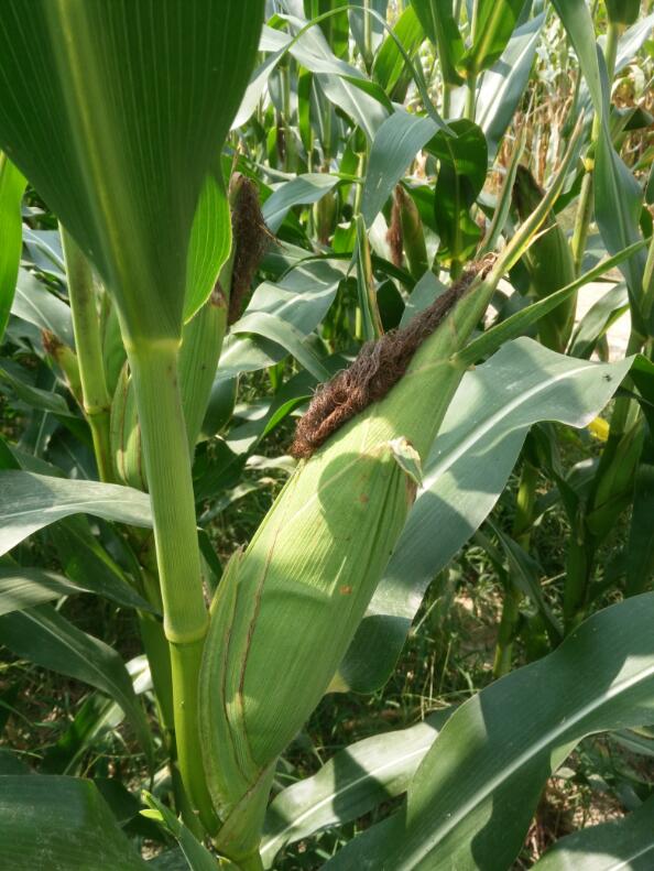 抗性表現(xiàn):2014年經(jīng)河北省農(nóng)林科學(xué)院植物保護(hù)研究所抗病性接種鑒定:中抗矮花葉病、莖腐病,抗大斑病、彎孢葉斑病,感褐斑病、小斑病。