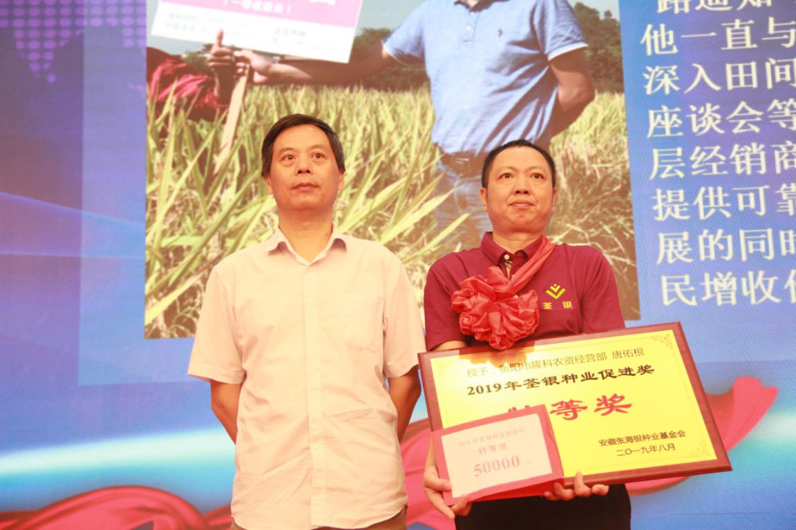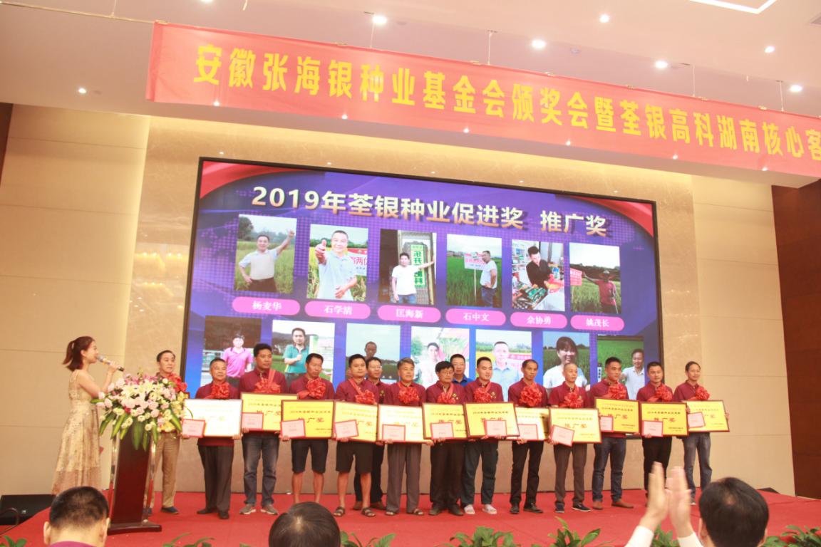 ?? ?隨后,張海銀種業(yè)基金會(huì)鄭滿(mǎn)生監(jiān)事宣讀了張海銀種業(yè)基金會(huì)“荃銀種業(yè)促進(jìn)獎(jiǎng)”2019年頒獎(jiǎng)決定文件。大會(huì)向38名在優(yōu)質(zhì)水稻推廣和良種服務(wù)等方面取得優(yōu)異成績(jī)的個(gè)人頒發(fā)了“荃銀種業(yè)促進(jìn)獎(jiǎng)”專(zhuān)項(xiàng)獎(jiǎng)。