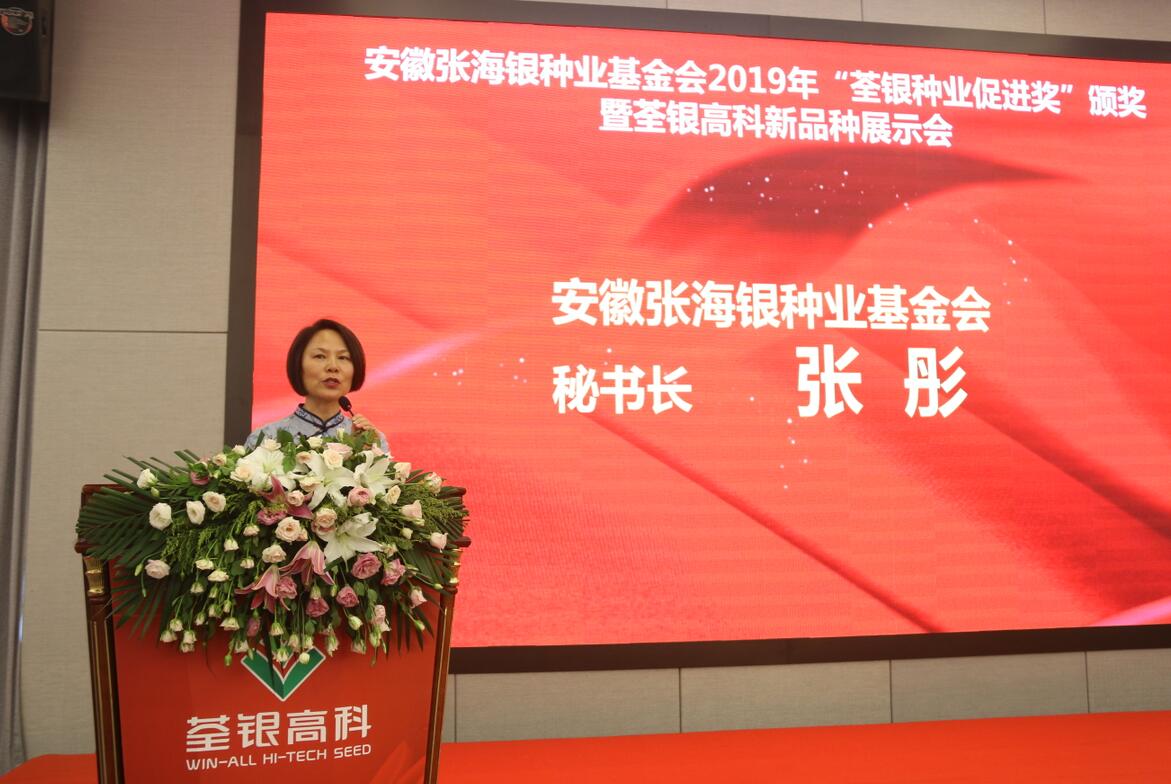 ??? 荃銀高科副董事長、總經理、基金會副理事長張琴致歡迎辭并作報告,她結合當前種業(yè)形勢,詳細介紹了荃銀高科的創(chuàng)新與發(fā)展,展示了荃銀高科的核心競爭力,并闡述了發(fā)起成立安徽張海銀種業(yè)基金會的初衷及在履行社會責任方面所做出的努力。會上,她向“荃銀種業(yè)促進獎”獲得者表示祝賀,并指出,“種業(yè)強國”是“中國夢”的重要組成部分,希望在座的種業(yè)人能夠矢志不渝,以終為始,為我國現(xiàn)代種業(yè)發(fā)展作出新的貢獻。