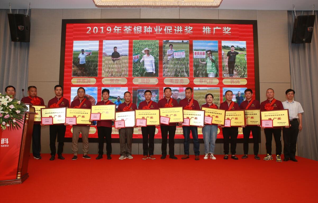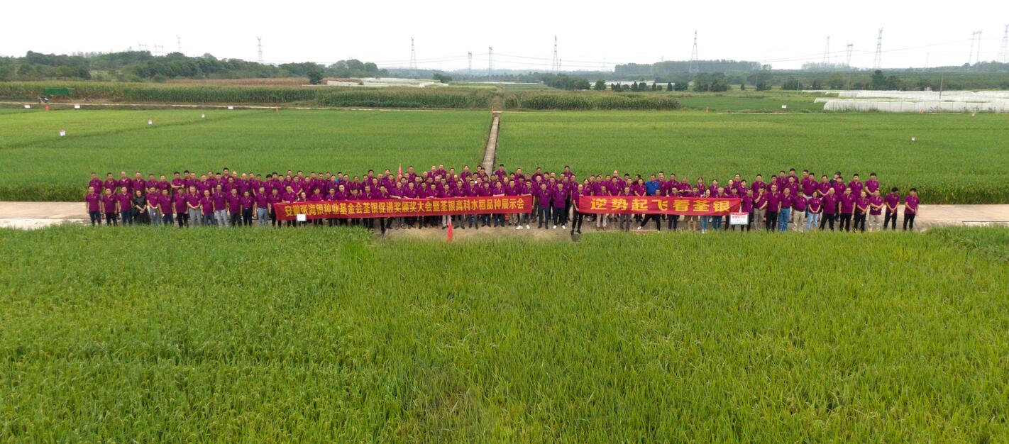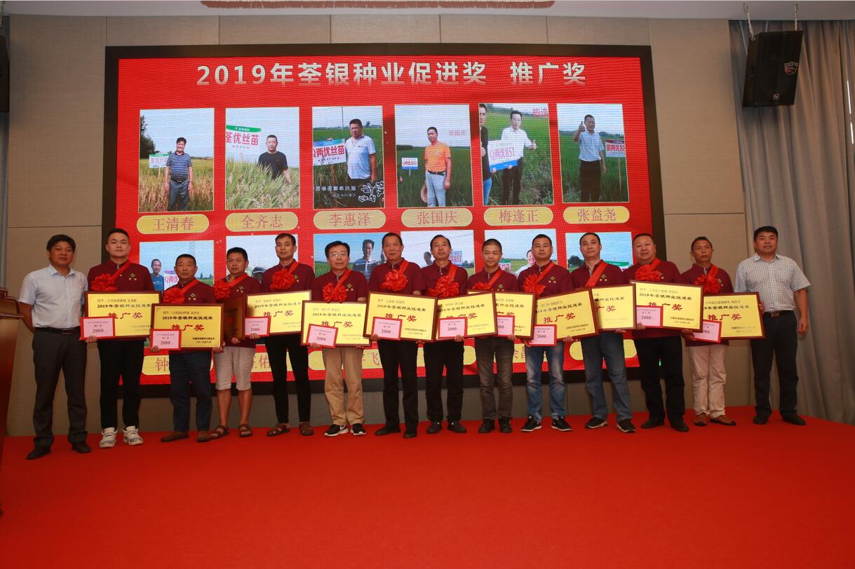 ??? 2019年9月1日,安徽張海銀種業(yè)基金會“荃銀種業(yè)促進獎”頒獎大會暨荃銀高科水稻品種展示會在合肥召開。中國種業(yè)十大功勛人物、荃銀高科創(chuàng)始人、安徽張海銀種業(yè)基金會理事長張海銀,安徽省種子管理總站原站長、基金會專家組顧問成員、“荃銀種業(yè)促進獎”評審委員會主任孔令傳,荃銀高科副董事長、總經理、基金會副理事長張琴,荃銀高科董事、常務副總經理、基金會副理事長王玉林,荃銀高科副總經理、荃銀農科院院長、首席技術官張從合,基金會秘書長張彤,荃銀高科總經理助理劉義銳、監(jiān)事會主席謝慶軍,荃銀高科工會主席、基金會監(jiān)事鄭滿生,中化現(xiàn)代農業(yè)、中化化肥等單位領導嘉賓,以及來自湖北省16個縣區(qū)180多位三農一線種業(yè)工作者參加了會議。