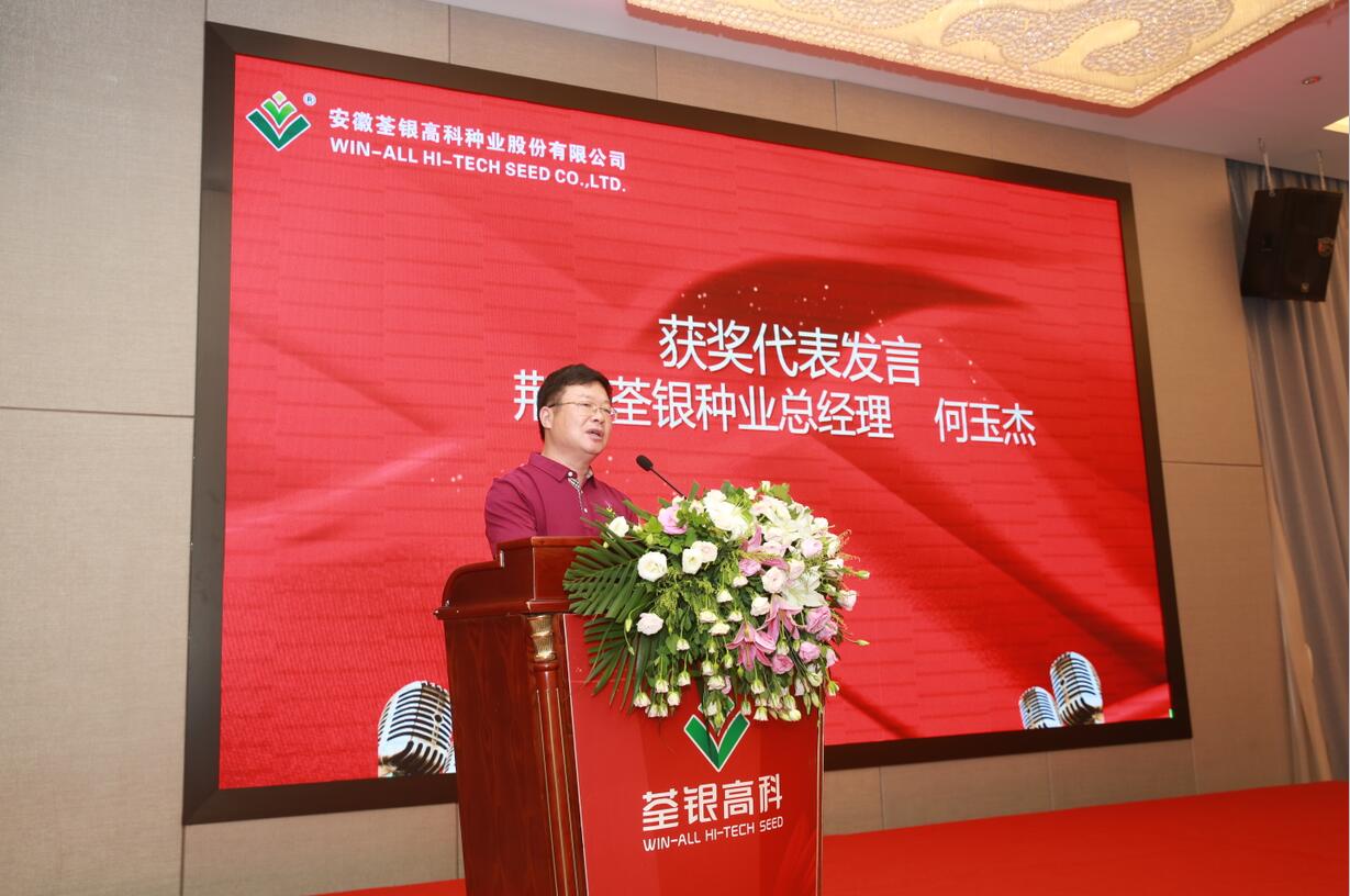 荃銀高科董事、常務副總、安徽張海銀種業(yè)基金會副理事長王玉林先生為“荃銀種業(yè)促進獎”三等獎獲獎者頒獎